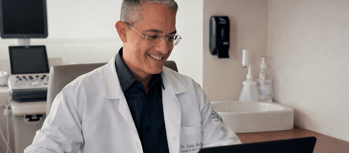 "Consigo colocar documentos do paciente, PDF dos exames, escaneamentos, fotos de exames também. Facilita porque quando o paciente volta, faz o retorno, eu consigo ter acesso a todo o banco de imagens." — Dr. Sasha, Clínica Mãos