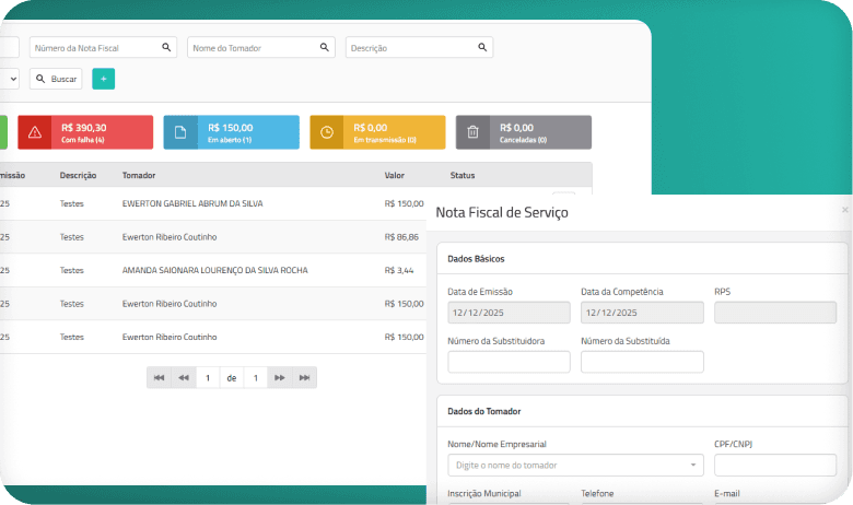 A NFS-e é vinculada ao faturamento do sistema, mantendo o controle financeiro organizado, transparente e atualizado em tempo real.